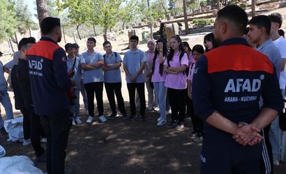 Kilis'te "Geleceğin Yıldızları Yaz Kampı" projesi kapsamında bir araya gelen öğrencilere, ilk yardım ve doğada çadır kurma eğitimi verildi.