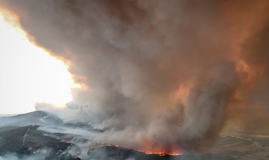 Yangın, Gelibolu'nun Tayfur ile Cumalı köyleri arasındaki alanda çıktı ve rüzgârın etkisiyle Eceabat bölgesine ulaştı. AA ekipleri, yangının boyutunu ve etkili olduğu alanı havadan dronla görüntüledi.
