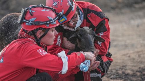 Çanakkale'nin Gelibolu ilçesinde orman yangınında mahsur kalan bir koyun, arama kurtarma ekipleri tarafından alevlerin arasından kurtarıldı.