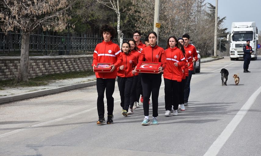 Cumhurbaşkanı Recep Tayyip Erdoğan'a 18 Mart'ta sunulmak üzere Gelibolu Yarımadası'ndan alınan toprak, deniz suyu ve Türk bayrağı, Bilecikli atletler tarafından Eskişehirli sporculara teslim edildi.