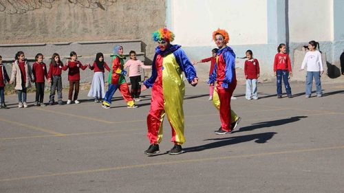 Genç Yeşilay ve Genç Kızılay gönüllüleri, Diyarbakır Fatih İlkokulu'nda oyun, yüz boyama ve eğitimlerle çocukları madde bağımlılığından korumayı amaçladı.