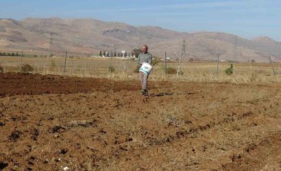 Batman’ın Gercüş ilçesinde çiftçiler, kış öncesinde buğday, arpa ve mercimek üretimi için tohumları toprağa ekiyor.
