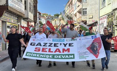 Sinop'un Gerze ilçesinde Filistin'e destek amacıyla yürüyüş gerçekleştirildi. Cihannüma, Deniz Feneri Derneği, İHH İnsani Yardım Vakfı, İlim Yayma Cemiyeti, Türkiye Diyanet Vakfı ve Türkiye Gençlik Vakfı öncülüğünde düzenlenen "Özgür Filistin'in Yanındayız" yürüyüşü, eski cezaevi önünden başlayıp festival alanında sona erdi.