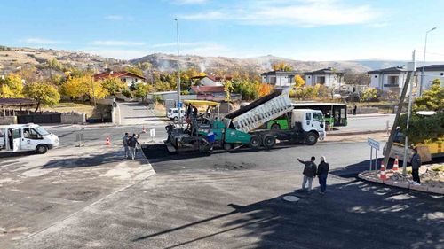 Melikgazi Belediyesi, Gesi Mimar Sinan Caddesi'nde 1.5 km'de 3 bin 500 ton asfalt, orta refüj ve ağaçlandırma çalışması yürütüyor.