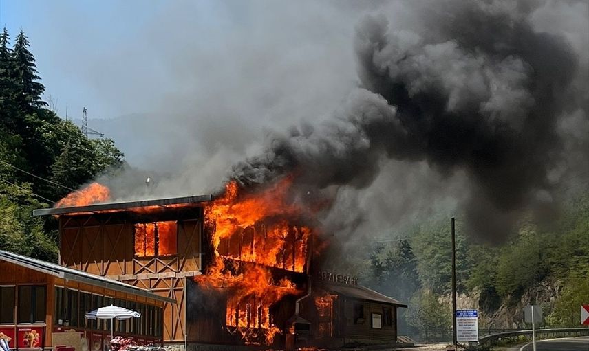 Giresun'un Dereli ilçesinde Kuzalan Tabiat Parkı'nda Dereli-Şebinkarahisar kara yolu kenarında faaliyet gösteren bir sosyal tesisin restoran kısmında çıkan yangın itfaiye ekiplerince söndürüldü.