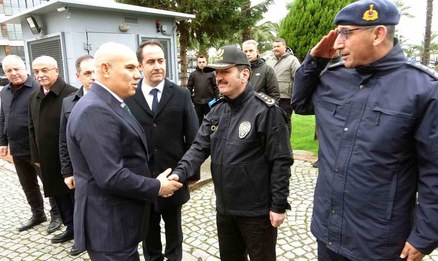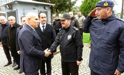 Vali Koç, Giresun Valiliği binası bahçesinde düzenlenen törende protokol üyeleri tarafından karşılandı.