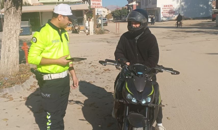 İlçe genelinde farklı noktalarda yapılan uygulamalarda, motosikletlerin evrakları kontrol edilirken, kask kullanımı, plaka uygunluğu ve trafik kurallarına uyulup uyulmadığı titizlikle incelendi.
