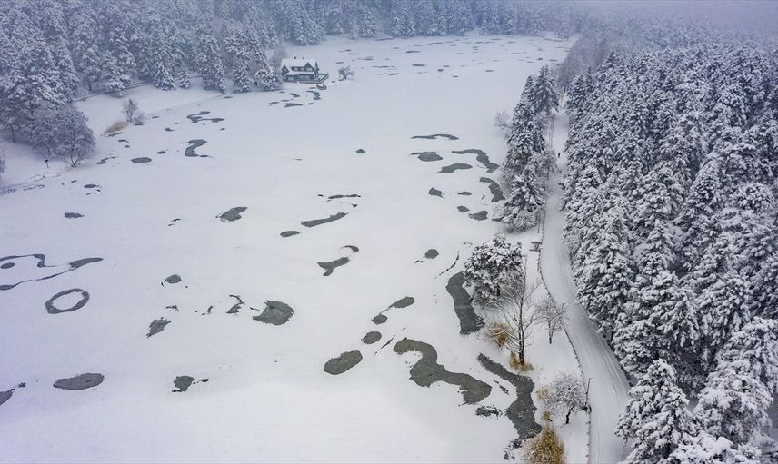 Yağışın ardından göl çevresi ve tabiat parkının etrafındaki dağlarda kar kalınlığı 30 santimetreye ulaştı. Gölcük'e gelen ziyaretçiler, bu eşsiz manzara eşliğinde yürüyüş yaparak bol bol fotoğraf çekti. Özellikle tabiat parkındaki gölün donmuş yüzeyi ve etrafındaki kar örtüsü, drone ile görüntülendi.
