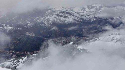 Gümüşhane'yi örten yoğun kar ve dağlardaki sis tabakası, drone görüntüleriyle kartpostallık manzaralar oluşturdu; kış turizmi potansiyeli gözler önüne serildi.