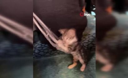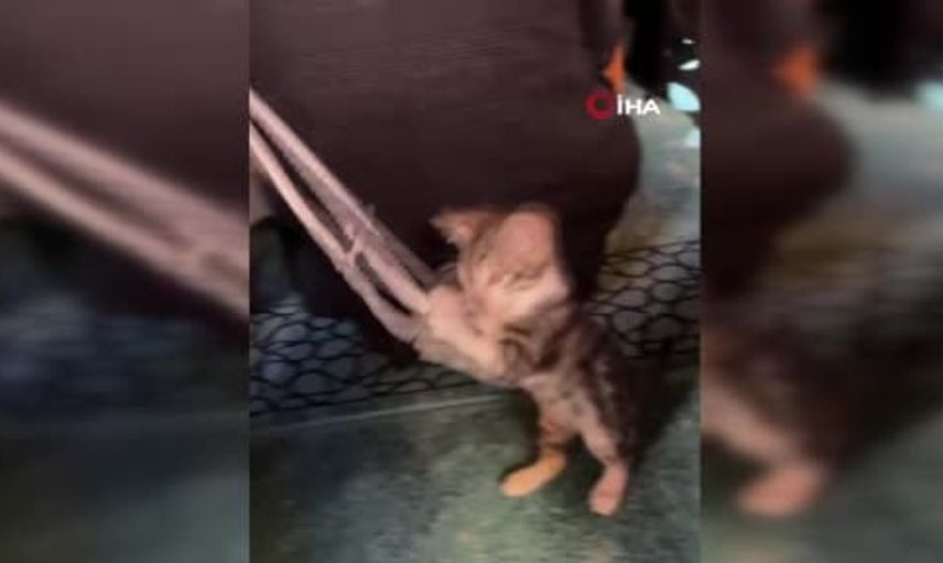 Yavru kedinin cami içindeki hareketleri, camide bulunan bir vatandaş tarafından cep telefonu kamerasıyla kaydedildi.