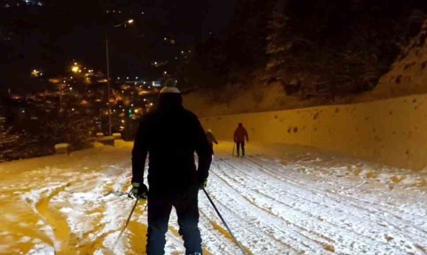 Gümüşhane'de Kayakçılar Şehir Merkezine Kayarak İndi