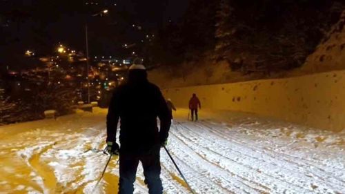 Gümüşhane'de Kayakçılar Şehir Merkezine Kayarak İndi