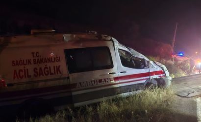 Gümüşhane'nin Kelkit ilçesinde meydana gelen kazada bir ambulansın devrilmesi sonucu 3 sağlık personeli yaralandı.