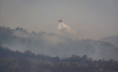 Bursa'nın İznik ilçesinde makilik alanda çıkan yangına havadan ve karadan müdahale ediliyor.