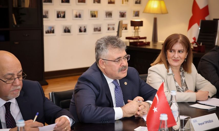 Gürcistan Parlamentosu Başkanı Şalva Papuaşvili (sağ 2), TBMM Güvenlik ve İstihbarat Komisyonu Başkanı ve AK Parti Kocaeli Milletvekili Veysal Tipioğlu'nun (sol 3) başkanlığındaki heyet ile parlamentoda bir araya geldi.