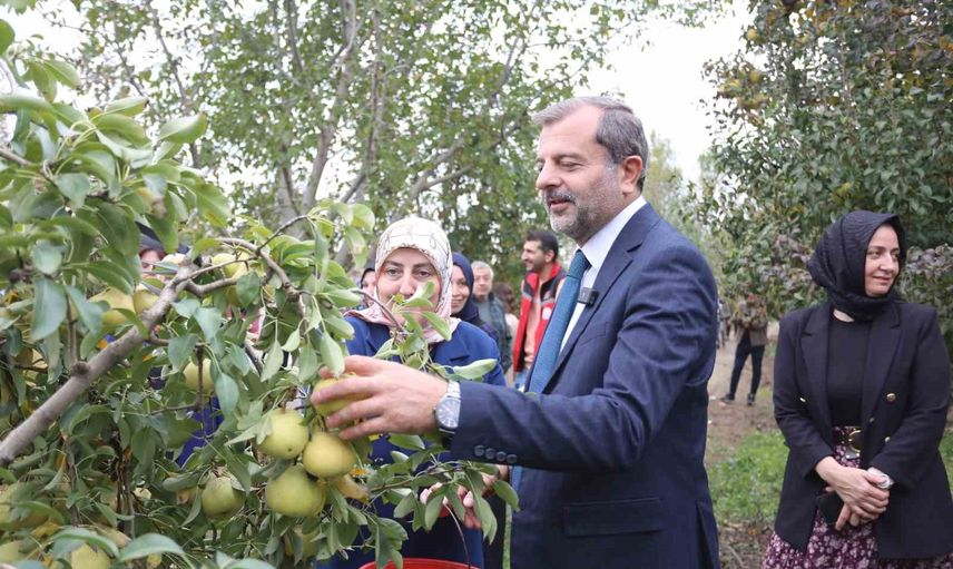 Topuklu ayakkabılı iş kadınları ile şalvarlı köylü kadınlar, ağırlığı bir kilogramı bulan deveci armut hasadında bir araya geldi. Bursa’nın Gürsu ilçesi, Türkiye’nin en büyük deveci armudu üreticisi olarak bu yılki hasadı anlamlı bir mesajla sonlandırdı.