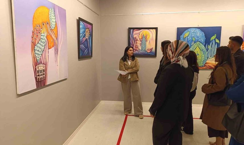 Öğrenciler, Ressam Sezgin Yüksel’in 'Yaşama Özdeş' isimli sergisini gezerek sanatçının eserleri hakkında teknik bilgiler aldı ve eserlerin yaratım süreci üzerine fikir alışverişinde bulundu.