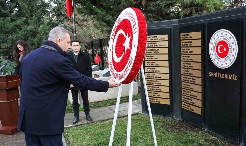 Dışişleri Bakanı Hakan Fidan, 16. Büyükelçiler Konferansının resmi açılış töreni öncesinde, beraberindeki bakan yardımcıları ve büyükelçilerle birlikte Cebeci Asri Mezarlığındaki Dışişleri Şehitliğini ziyaret etti.