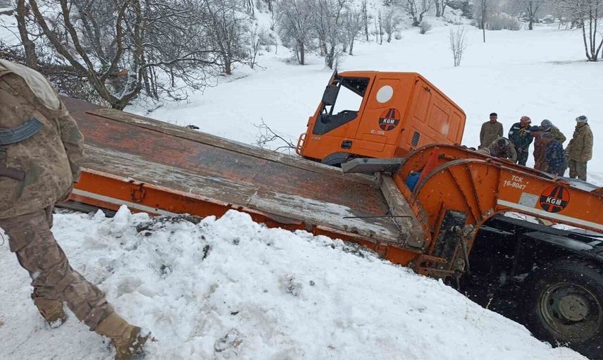Edinilen bilgilere göre kaza, Geçitli köyü'nde meydana geldi. Göreve çıkan ve içerisinde 2 personelin bulunduğu iş makinesi, kaygan zemin nedeniyle kontrolünü kaybederek devrildi.