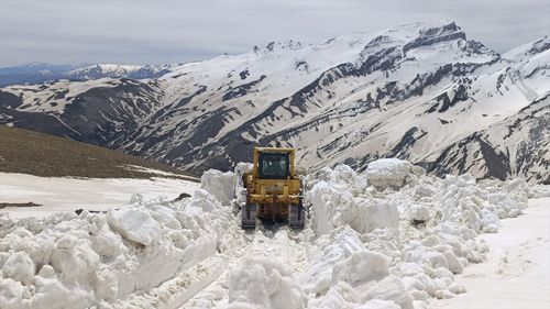 Hakkari'nin Yüksekova ve Şemdinli ilçelerinde, karla mücadele ekipleri nisan ayında da yolları açmaya çalışıyor.