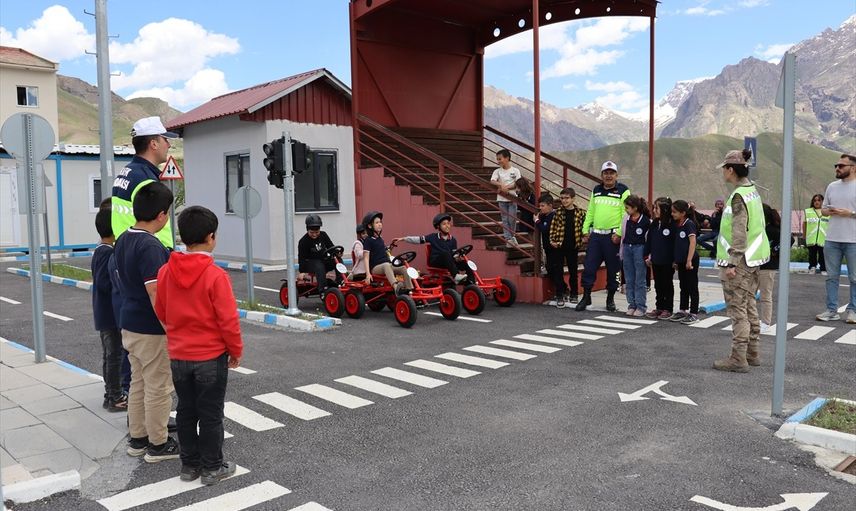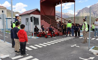 Hakkari Emniyet Müdürlüğü ve İl Jandarma Komutanlığı ekipleri, Trafik Haftası kapsamında öğrencilere uygulamalı trafik eğitimi verdi.