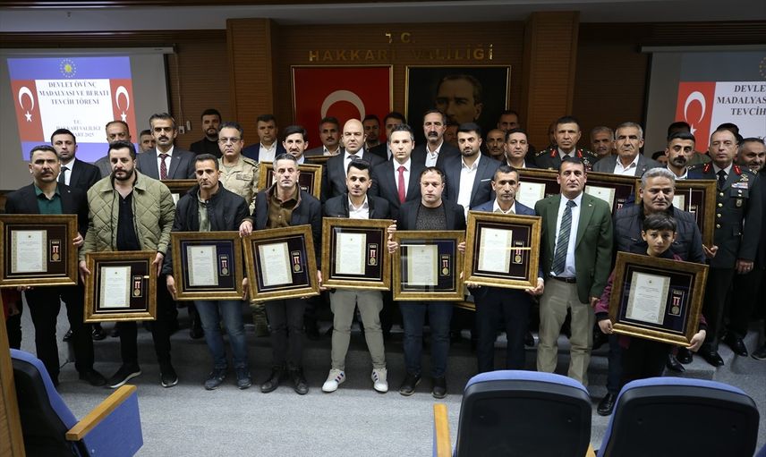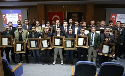 Hakkari'de Valilik toplantı salonunda düzenlenen törende, şehit ailelerine devlet övünç madalyası ve beratı takdim edildi.