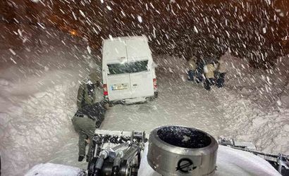 Hakkari'de etkili olan kar ve tipi nedeniyle yolda ilerleyemeyen yolcu minibüsü, belediye ekiplerinin müdahalesiyle kurtarıldı.