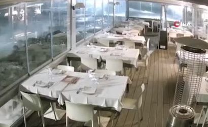 İtalya’nın güneyindeki Sicilya’da etkili olan Harry Siklonu’nda dev dalgalar bir restoranı vurdu.