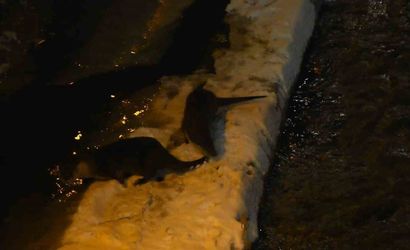 Gümüşhane'de Harşit Çayı kıyısında, nesli tükenme tehlikesi altında bulunan iki su samuru kar üzerinde oyun oynarken görüntülendi.
