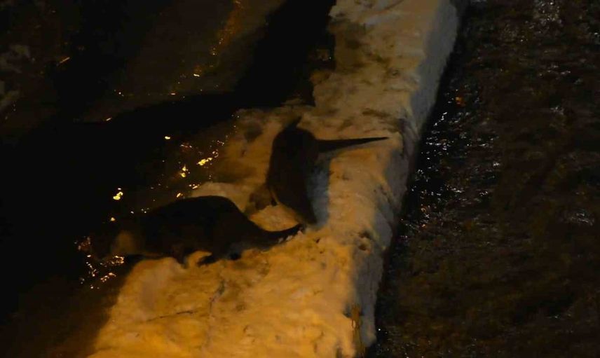 Harşit Çayı'nda nesli tehlike altındaki su samurları kar üstünde görüntülendi