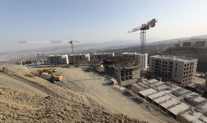 Hatay'ın merkez Antakya ilçesinde 6 Şubat 2023'teki depremlerin ardından başlatılan inşaat çalışmaları sürüyor. Bölgedeki yeni yerleşim alanlarında 1342 afet konutu ile 5 dükkanlı 3 ticaret merkezi inşa ediliyor.