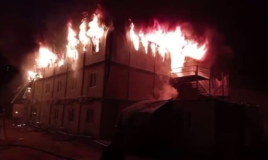 HATAY'DA İNŞAAT İŞÇİLERİNİN KALDIĞI KONTEYNER YATAKHANE ALEVLERE TESLİM OLARAK YANDI. YARALANAN VE CAN KAYBI OLMAYAN YANGIN, İTFAİYE EKİPLERİ TARAFINDAN SÖNDÜRÜLDÜ.