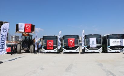 Hatay Büyükşehir Belediyesi tarafından çeşitli hizmetlerde kullanılmak üzere satın alınan otobüs, kamyon, kamyonet, pikap, temizlik ve iş makinelerinden oluşan 1000 aracın tanıtımı yapıldı.