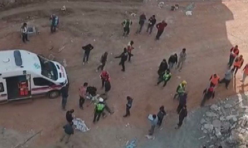 Hatay'ın Antakya ilçesi Akevler Mahallesi'nde bir şantiye alanında yaşanan kazada, 25 metrelik vinç kırıldı ve vinçte bulunan 2 işçi metrelerce yükseklikten yere düştü.
