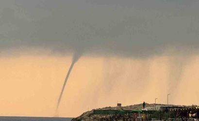 Hatay'da, Akdeniz açıklarında deniz yüzeyinde oluşan hortum, sahil kesimlerinden gözlemlendi ve cep telefonu kameralarına yansıdı.