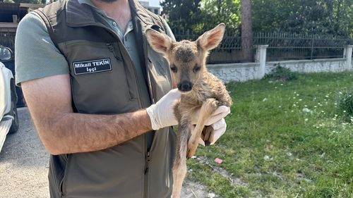 Hatay İskenderun'da bitkin halde bulunan bir karaca yavrusu, tedavi için yaban hayvanı kurtarma merkezine götürüldü.