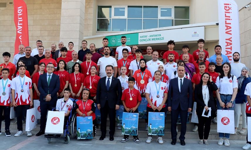 Antakya Gençlik Merkezi'nde düzenlenen ödül töreninde, Vali Masatlı, sporcularla bir araya gelerek onlarla sohbet etti ve uluslararası müsabakalarda gösterdikleri başarılarından dolayı hediyeler takdim etti.