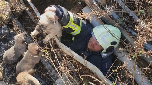 Hatay'ın Antakya ilçesinde inşaat çukuruna düşen 8 köpek yavrusu, itfaiye ekipleri tarafından kurtarıldı.