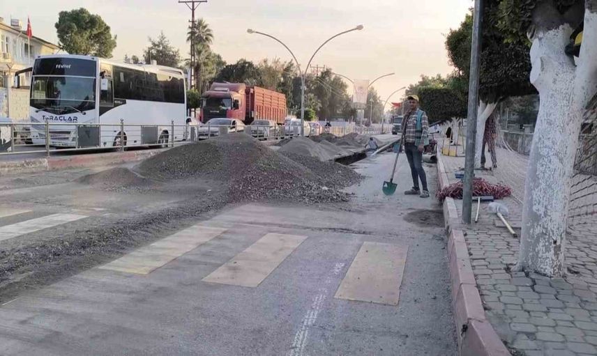 Dörtyol'da altyapı çalışması sırasında dikkat çeken ısınma yöntemi
