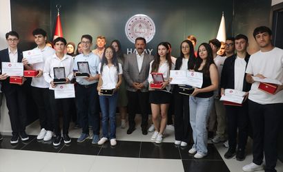 Hatay'da, Liselere Geçiş Sistemi (LGS) ve Yükseköğretim Kurumları Sınavı (YKS) başarılarıyla dikkat çeken öğrenciler için ödül töreni düzenlendi. Törene, Hatay Valisi Mustafa Masatlı ev sahipliği yaptı.