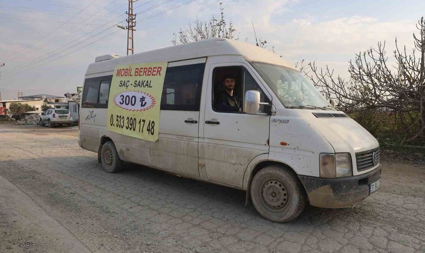 Hatay'da Mobil Berber: Minibüsüyle Şantiyelere VIP Hizmet