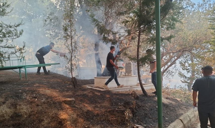 Karaali Mahallesi'ndeki mezarlığın da zarar gördüğü yangında, farklı noktalardaki 60'a yakın hane etkilendi. Hava kararması nedeniyle helikopterlerin müdahalesi ara verilirken, karadaki çalışmalar devam ediyor.