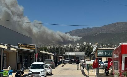 Hatay'ın merkez Antakya ilçesinde, yerleşim yerlerine yakın noktada çıkan orman yangınına havadan ve karadan müdahale ediliyor.