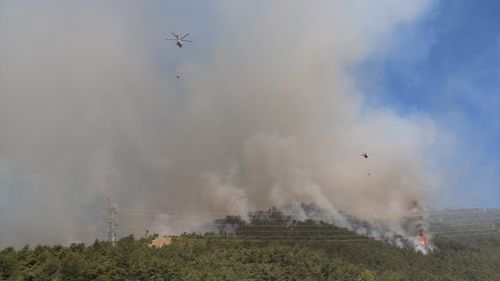 Hatay'da devam eden orman yangınına karadan ve havadan müdahale sürüyor. Rüzgar panik yarattı. Tedbir amaçlı tahliyeler yapıldı.