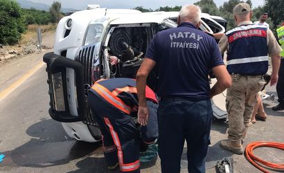 Hatay'ın Erzin ilçesinde devrilen pikaptaki 4 kişi yaralandı.