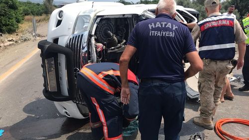 Hatay'da devrilen pikapta 4 kişi yaralandı, olay yerine acil sağlık ekipleri sevk edildi.