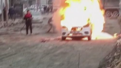Hatay'da Şantiyede Doğalgaz Kaçağı: Park Halindeki Araç Alev Aldı