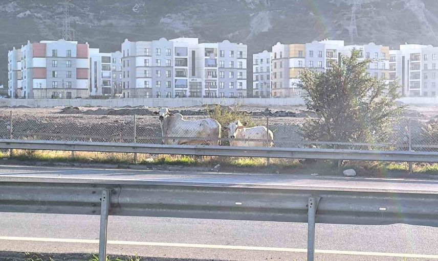 Hatay'da tırdan kaçan anguslar şehir merkezlerinde gündem oldu