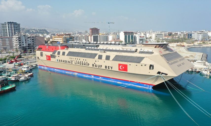 6 Şubat 2023'teki depremler sonrasında Hatay'ın İskenderun ilçesinde eğitim hizmeti sunan Karadeniz Lifeship Rauf Bey gemisi, görevini başarıyla tamamlayarak Yalova'daki Karmarine Tersanesine dönüş yolculuğuna hazırlanıyor.