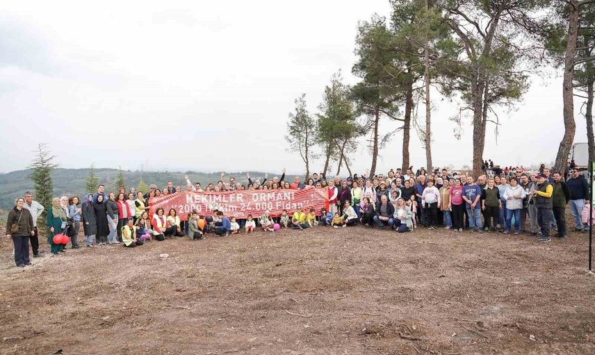 Yaklaşık 2 bin hekim, Orman Bölge Müdürlüğü’ne 24 bin fıstık çamı fidanı bağışlayarak önemli bir sosyal sorumluluk projesine imza attı. Bağışın ardından, yaklaşık 500 kişinin katılımıyla Bursa Mudanya-Balabancık mevkiinde kapsamlı bir fidan dikim şenliği düzenlendi. Etkinlikte yüzlerce fidan toprakla buluşarak 'Hekimler Ormanı''nın ilk adımı atıldı.